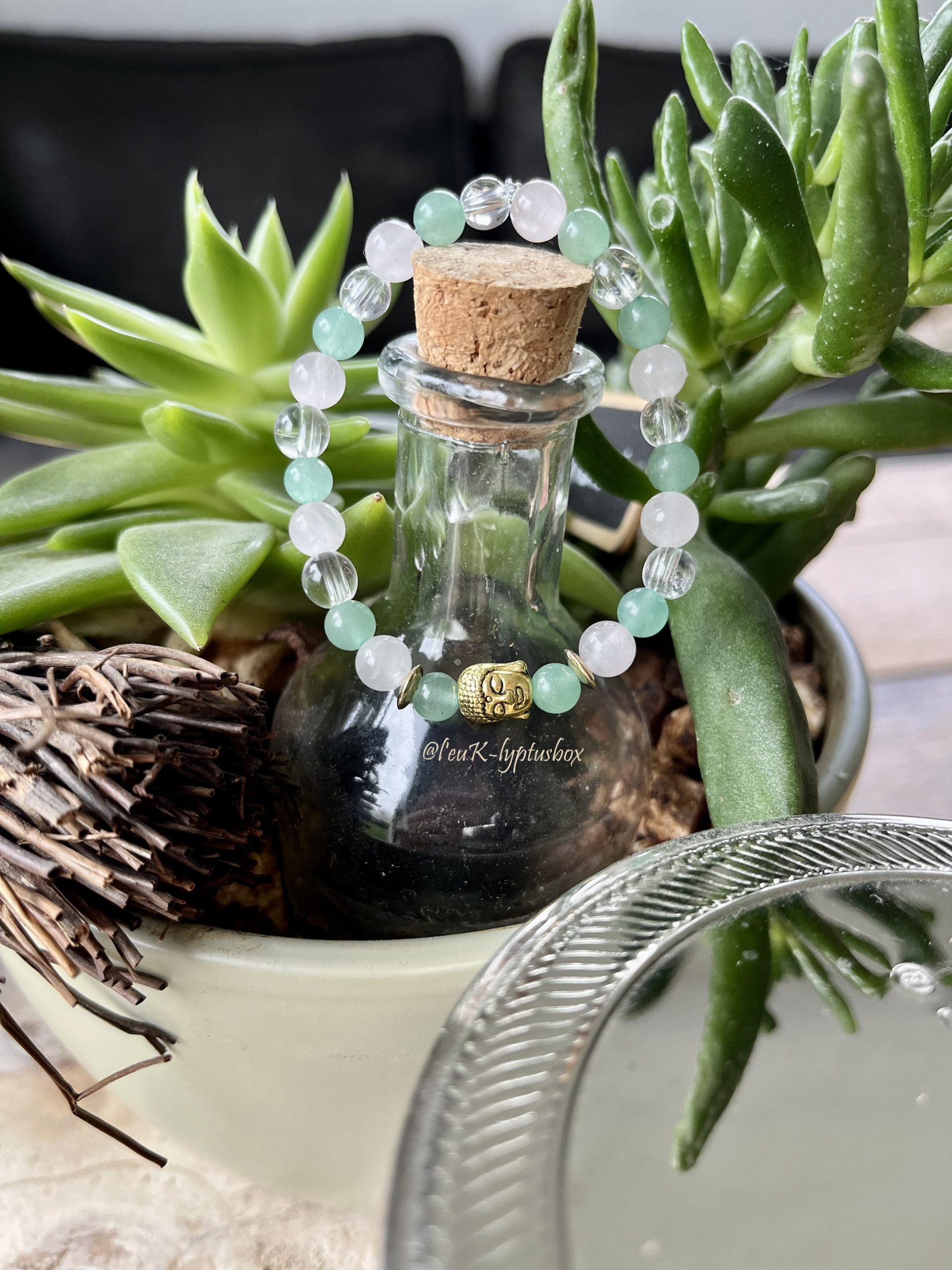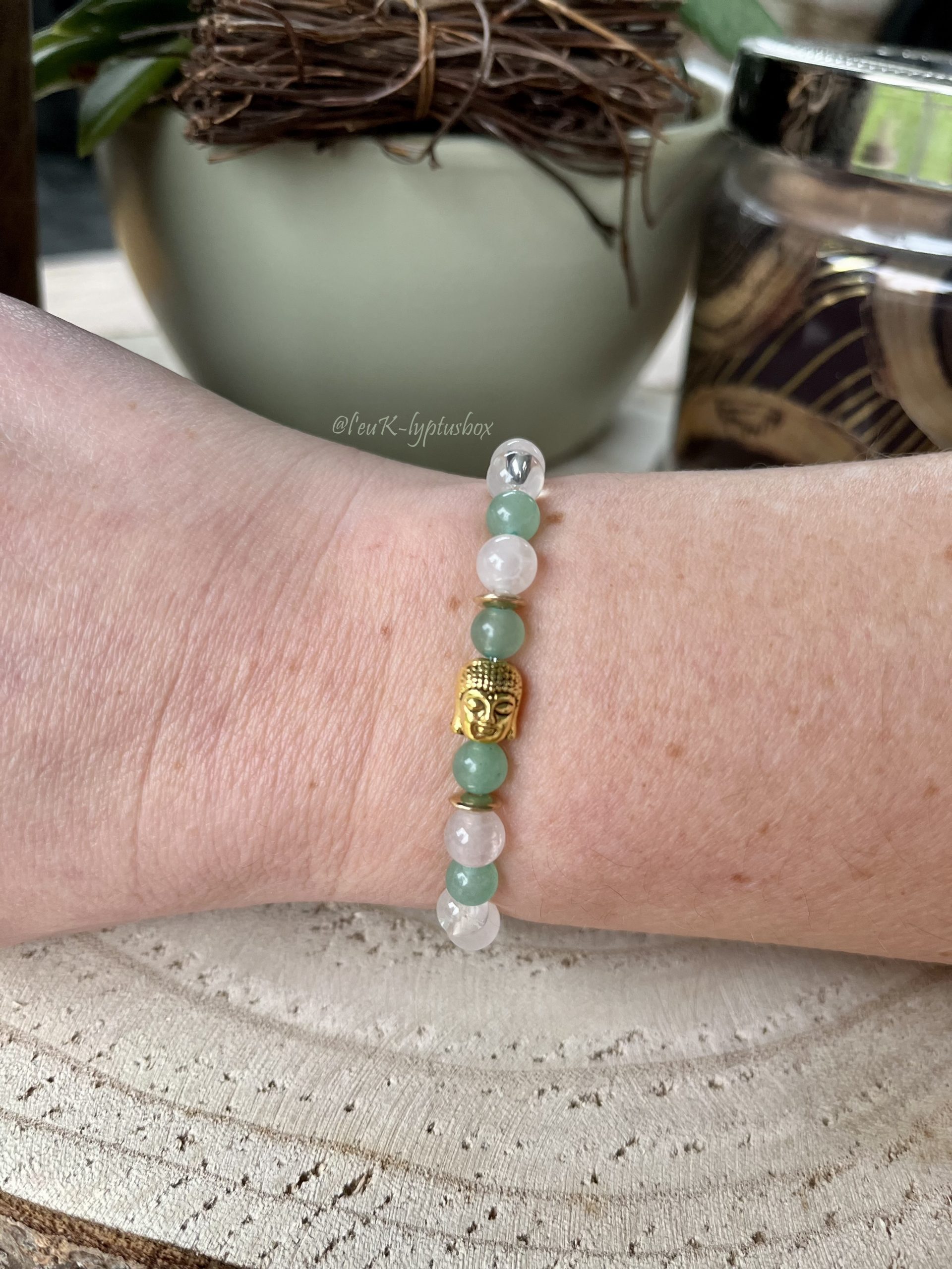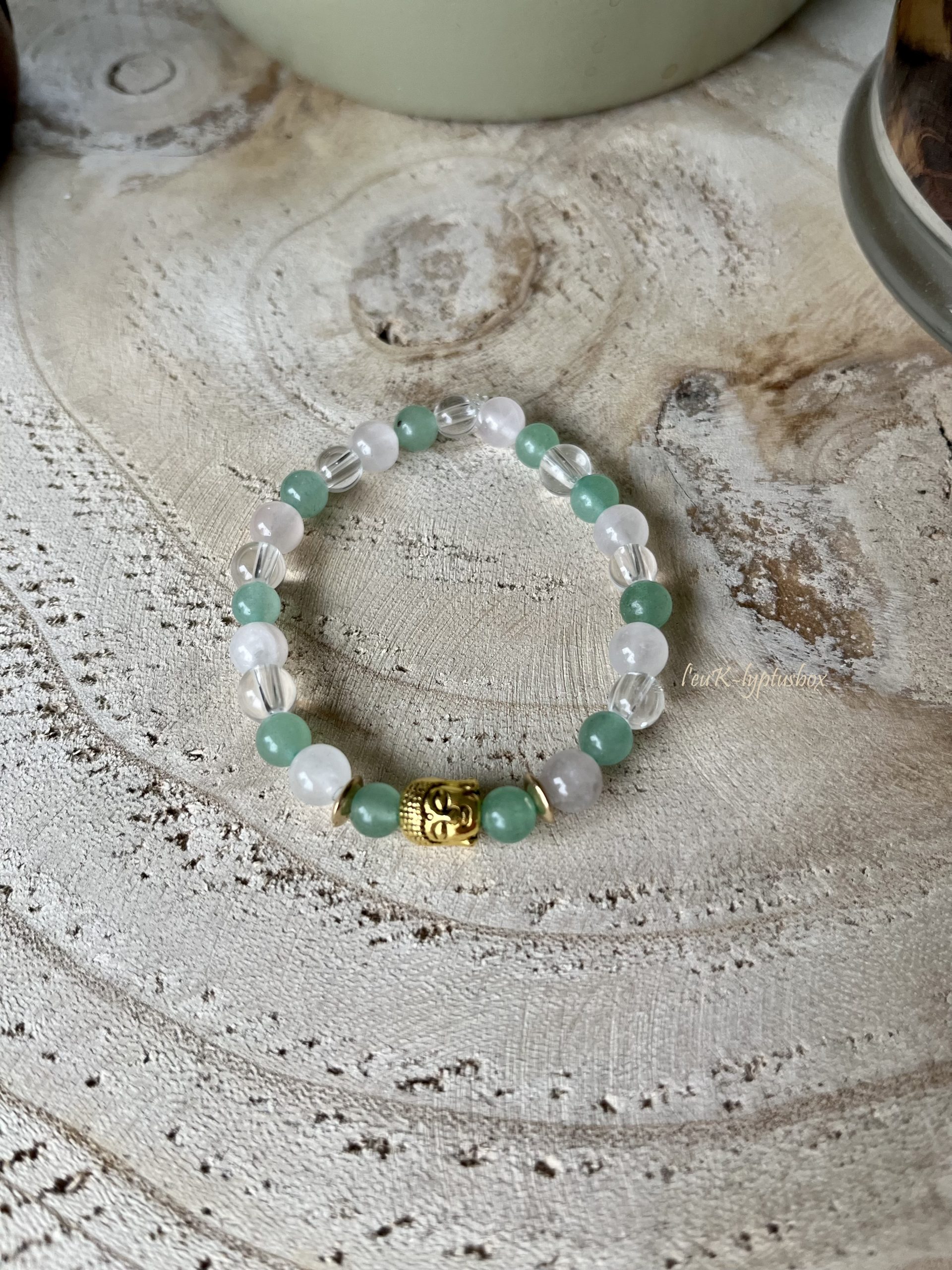 Ce bracelet de lithothérapie en quartz rose, aventurine verte et cristal de roche, t’apportera un sentiment de paix intérieure.
