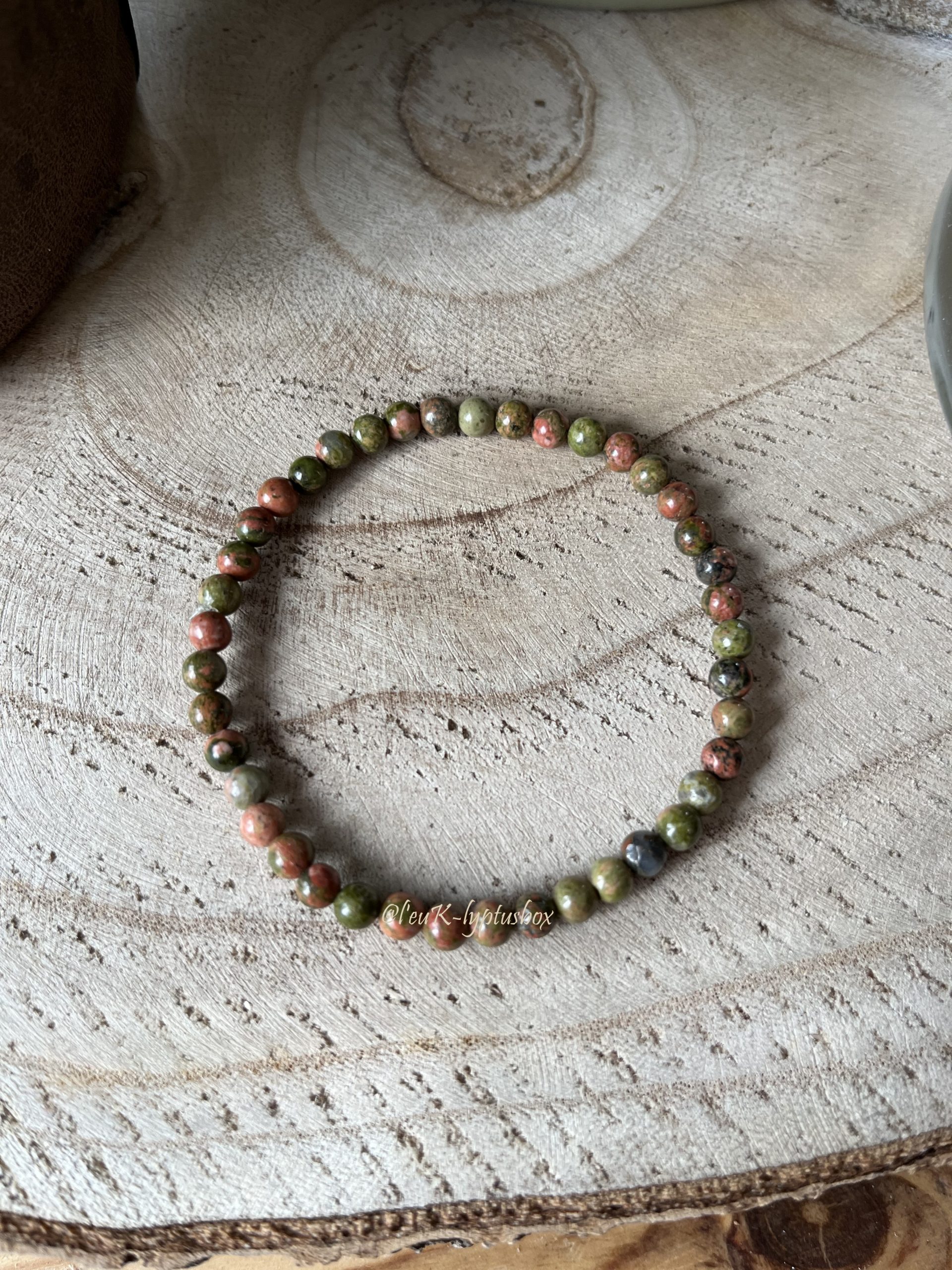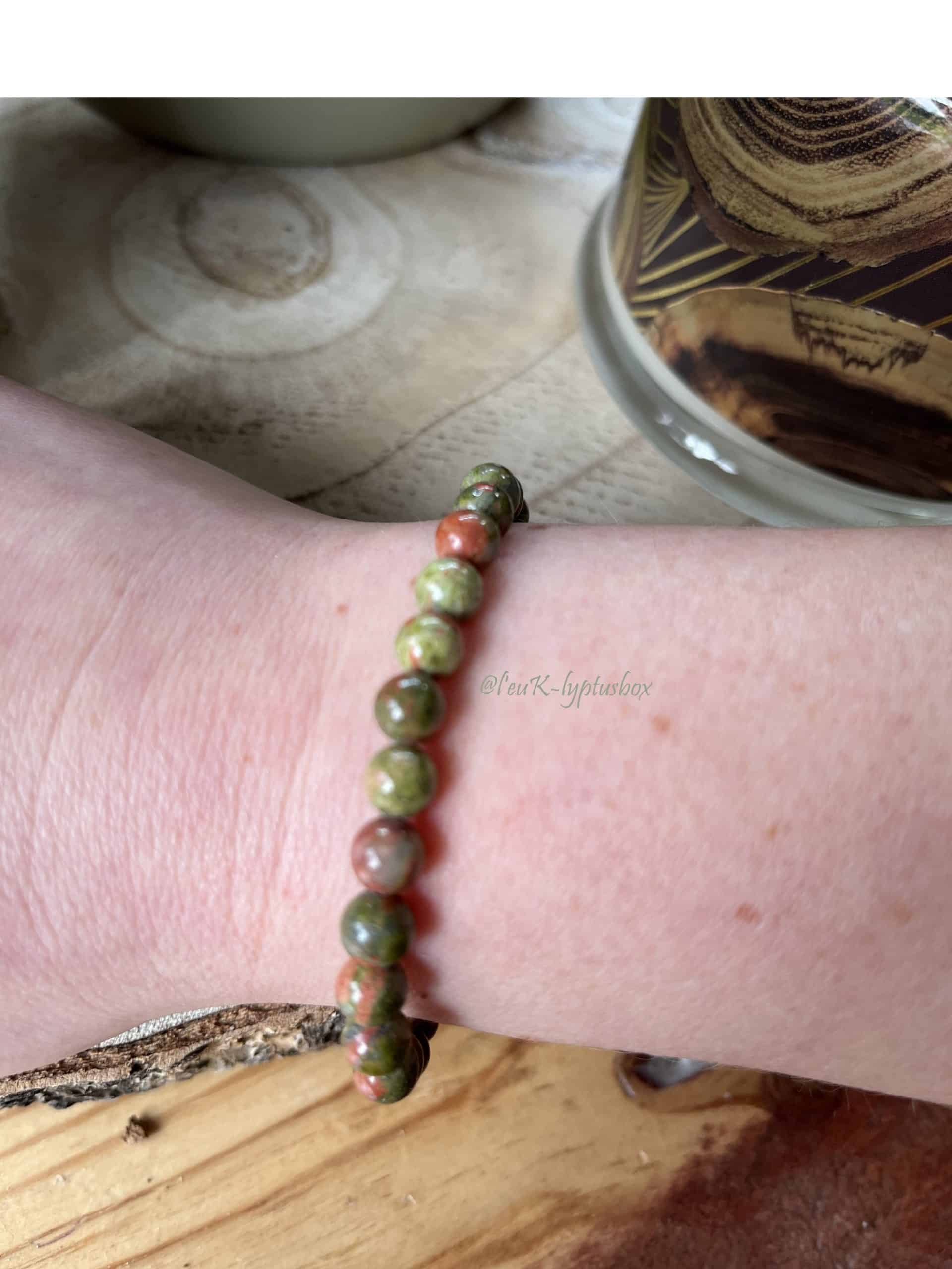 Ce bracelet Équilibre composé d’Unakité apaisera vos sentiments les plus sombres et vous apportera de la sérénité. En effet, en portant cette pierre, vos sentiments négatifs se verront apaisés. En accompagnement de vos traitements, portez de la lithothérapie pour apaiser vos maux. Comme nous le savons, durant des traitements anti-cancéreux, il existe d’importants effets secondaires physiques. Cependant, ceux-ci ne sont pas les seuls. En effet, dans la plupart des cas, le moral peut parfois fortement être impacté. La lithothérapie est là pour vous aider à surmonter ces effets.