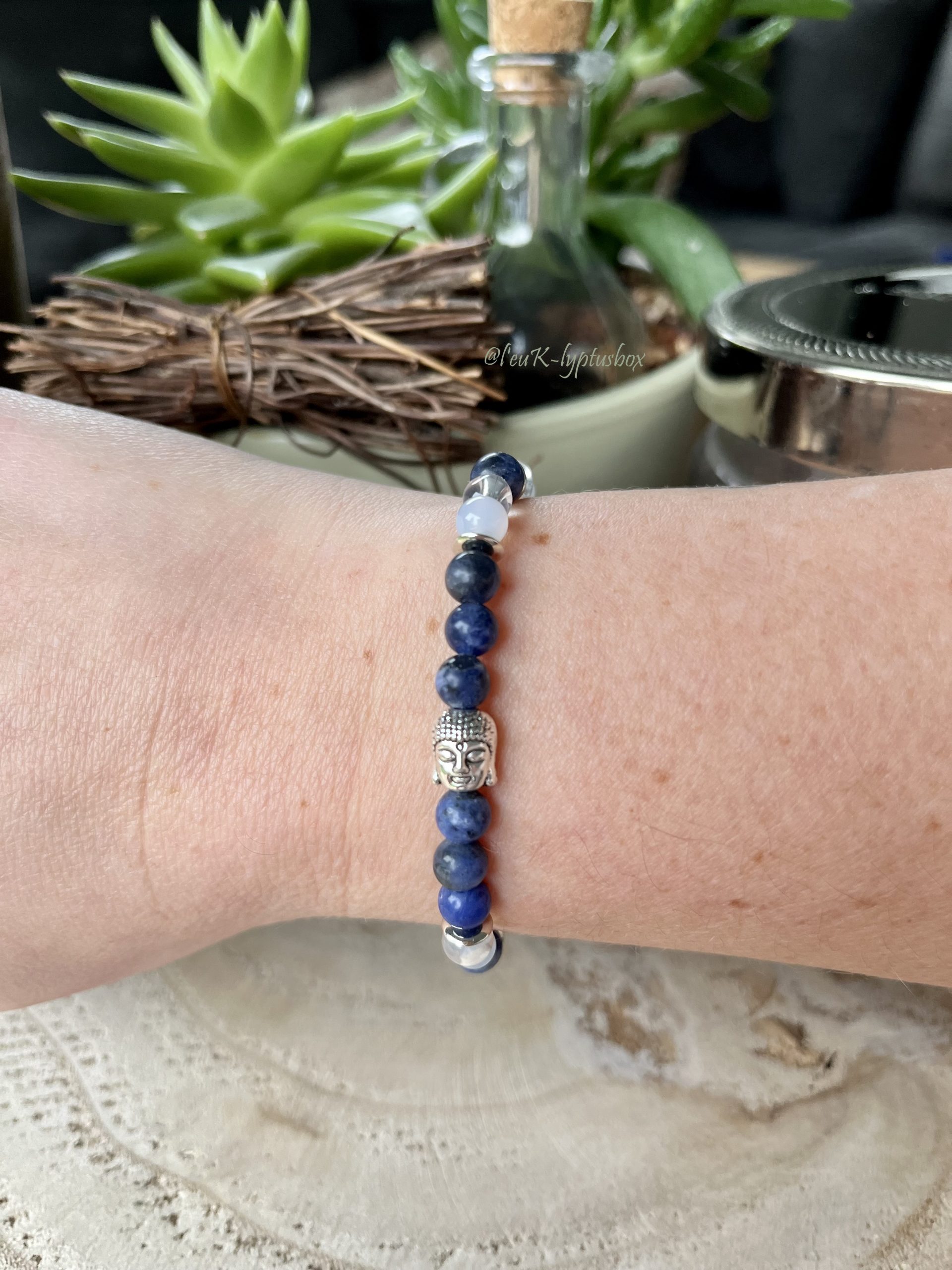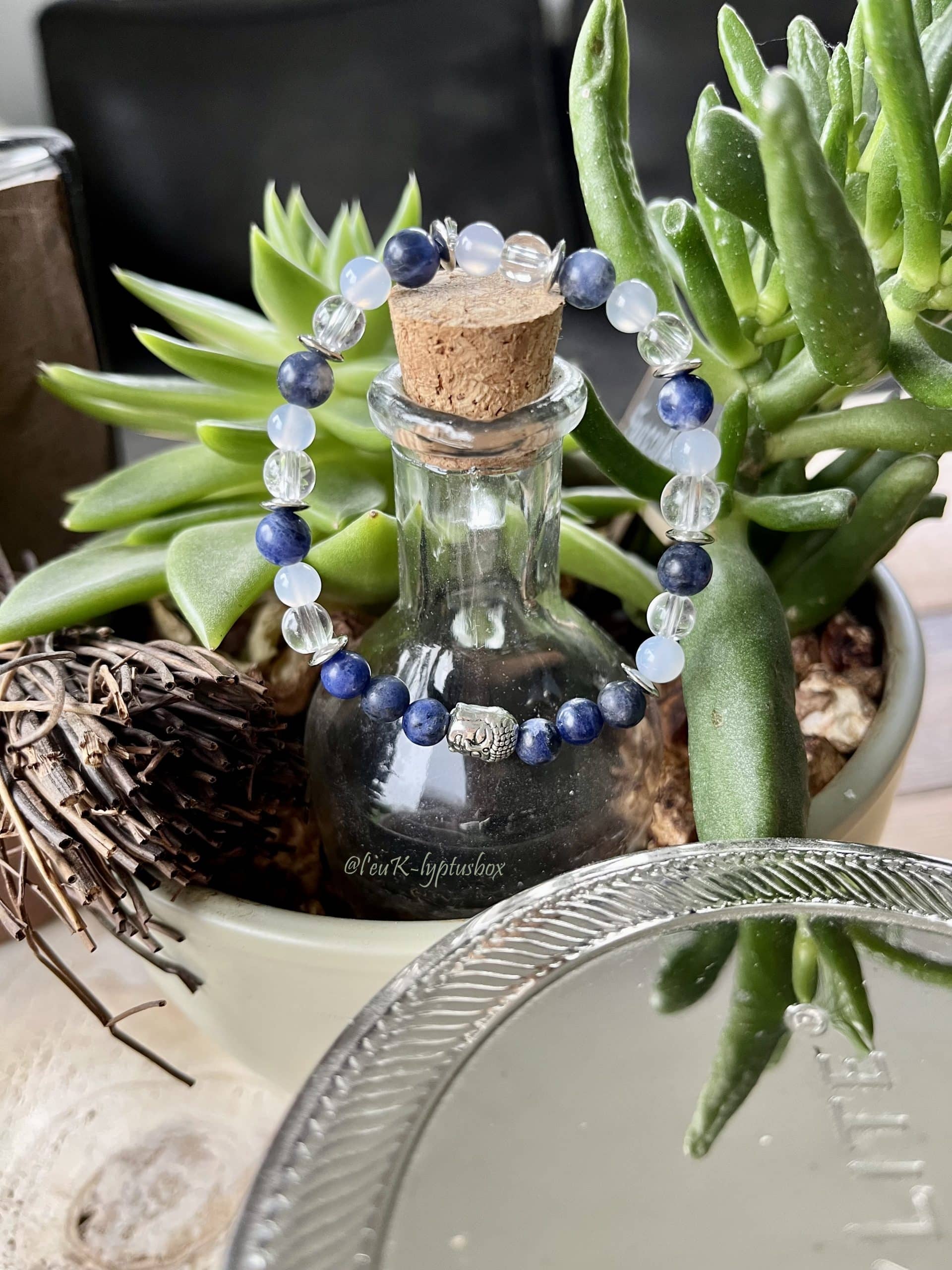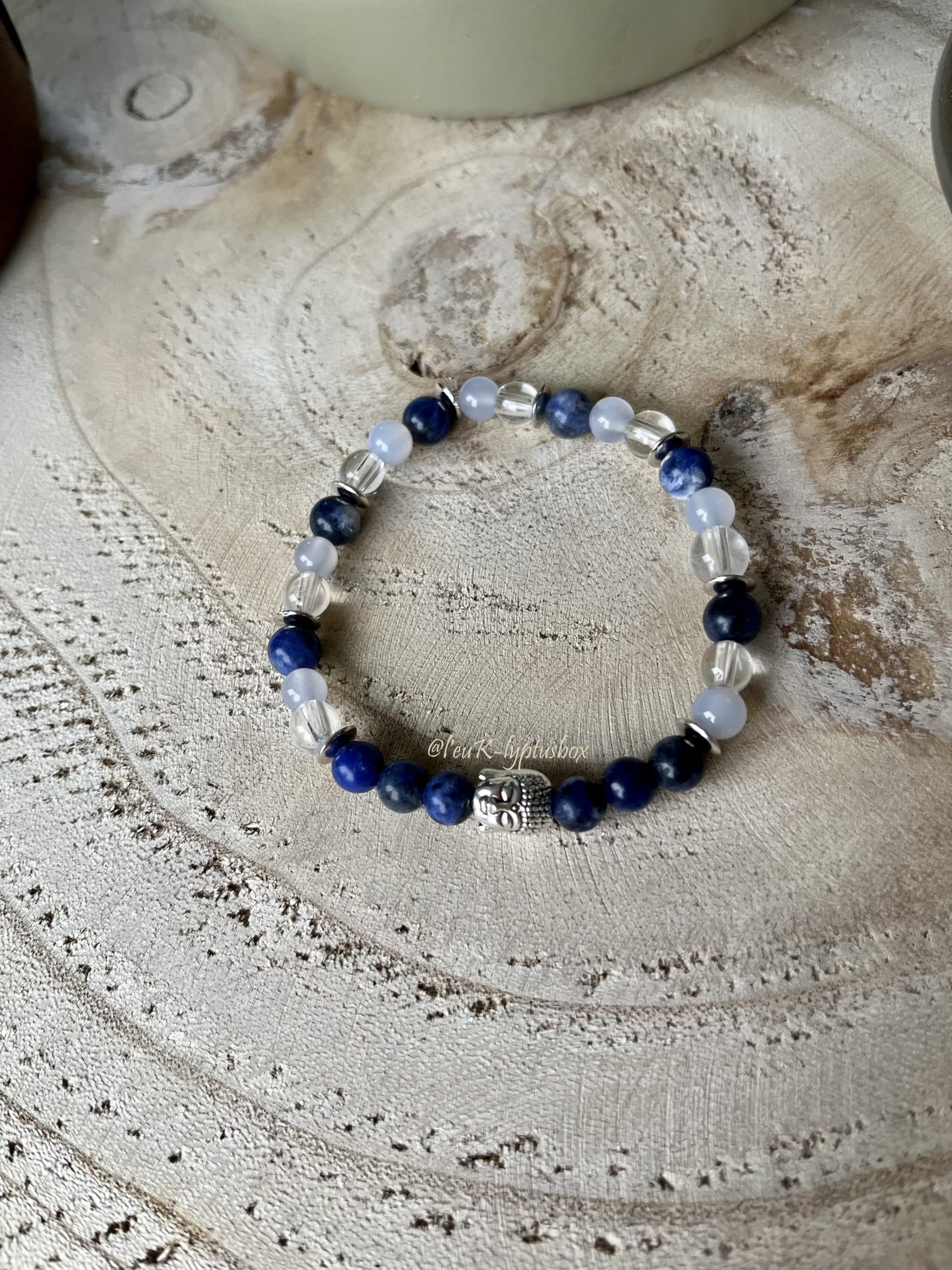Sodalite et calcédoine bleue, bienfaits renforcés par le cristal de roche.